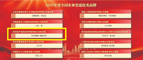 近日,鄭州地產(chǎn)集團(tuán)投資管理有限公司黨支部“紅色物聯(lián) 智惠萬家”黨建品牌被中國(guó)企業(yè)聯(lián)合會(huì)、中國(guó)企業(yè)家協(xié)會(huì)、《中國(guó)企業(yè)報(bào)》集團(tuán)和中企黨建研究院聯(lián)合授予“2023年度全國(guó)企業(yè)黨建優(yōu)秀品牌”榮譽(yù)稱號(hào)。