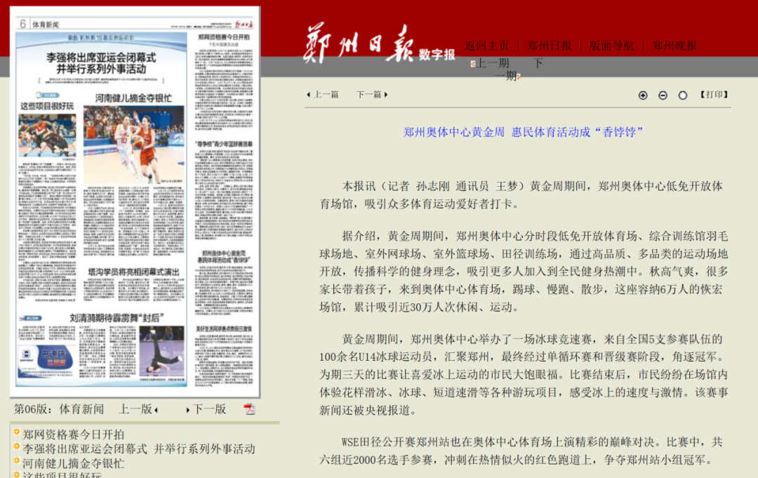 雙節(jié)黃金周期間,為豐富廣大市民假期出游選擇,鄭州奧體中心根據(jù)群眾喜聞樂(lè)見(jiàn)的休閑娛樂(lè)活動(dòng),充分發(fā)揮場(chǎng)館優(yōu)勢(shì),開(kāi)展場(chǎng)館低免開(kāi)放、國(guó)際車(chē)展、運(yùn)動(dòng)賽事等一系列豐富多彩的惠民文體活動(dòng),在小長(zhǎng)假期間,累計(jì)吸引近30萬(wàn)人次來(lái)到鄭州奧體中心打卡精彩活動(dòng),受到央視新聞?lì)l道、河南廣播電視臺(tái)、鄭州廣播電視臺(tái)、鄭州日?qǐng)?bào)等官方媒體爭(zhēng)相報(bào)道。