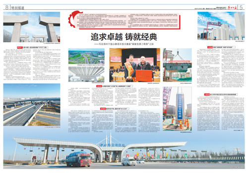 當(dāng)日上午,從在北京召開的“2022—2023年度國(guó)家優(yōu)質(zhì)工程獎(jiǎng)總結(jié)表彰大會(huì)”上傳來(lái)喜訊,京港澳高速、省道102與四港聯(lián)動(dòng)大道組合式互通立交工程榮獲“國(guó)家優(yōu)質(zhì)工程獎(jiǎng)”。這是鄭州市國(guó)省干線公路項(xiàng)目首次獲得該獎(jiǎng)項(xiàng),標(biāo)志著我市公路建設(shè)高質(zhì)量發(fā)展取得新的突破。