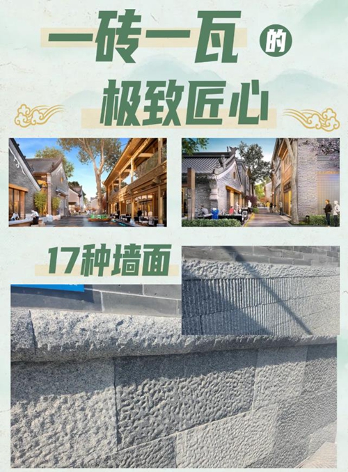 在15個(gè)院落采用了17種墻面,其中僅有5種墻面采用了新磚,這不僅體現(xiàn)了對(duì)審美的高標(biāo)準(zhǔn),也反映了項(xiàng)目對(duì)材質(zhì)和施工工藝的嚴(yán)格要求。