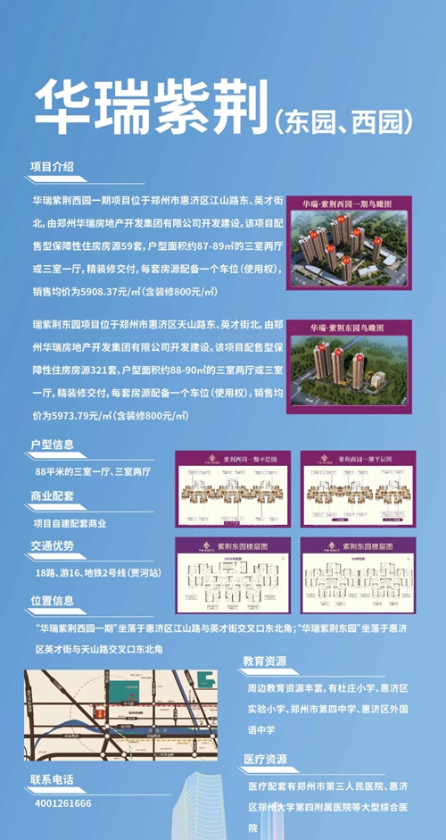 華瑞紫荊東園項目321套,戶型面積約88-90㎡的三室兩廳或三室一廳;