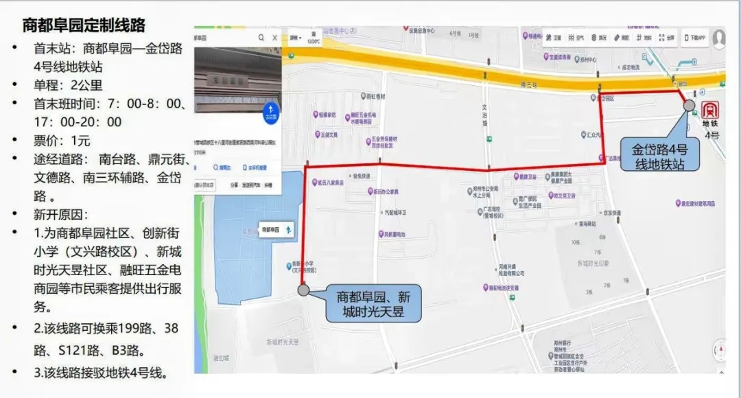 專線開通后,商都阜園項(xiàng)目租戶及業(yè)主實(shí)現(xiàn)了“出門即坐上公交,下車即地鐵口”的通勤效率新格局。線路途徑南臺(tái)路、鼎元街文德路、南三環(huán)輔路;中途包含超市、理發(fā)店、小商品城等便民商業(yè)點(diǎn)。無論是上班還是購(gòu)物,都能享受到高效、舒適的出行體驗(yàn)。線路單程2公里,除直達(dá)地鐵口外也可換乘199路、38路、S121路、B3路。不僅解決了租戶的通勤難題,也為周邊社區(qū)居民提供了便利,得到了大家的一致好評(píng)。