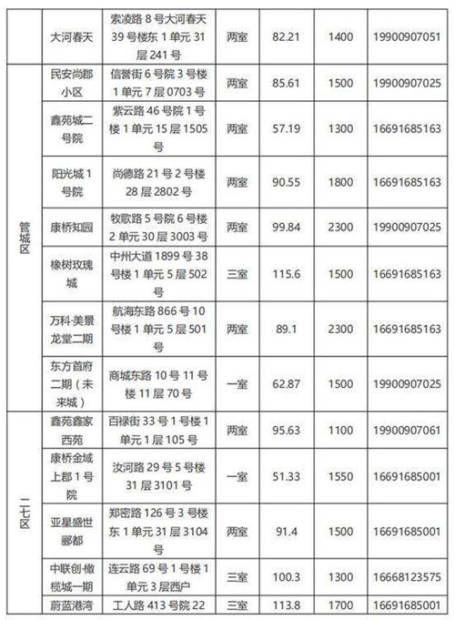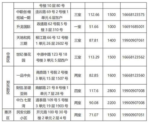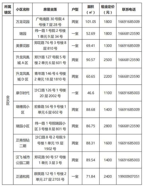 本批次配租房源共計32套,其中金水區(qū)12套、管城區(qū)7套、二七區(qū)8套、中原區(qū)1套、鄭東新區(qū)3套、惠濟區(qū)1套。水電費均為民用水電標(biāo)準(zhǔn),物業(yè)費為各小區(qū)物業(yè)收費標(biāo)準(zhǔn),房源精裝修交付,周邊配套設(shè)施齊全,配備家具家電,拎包入住,后續(xù)房源將根據(jù)裝修進度情況陸續(xù)配租。